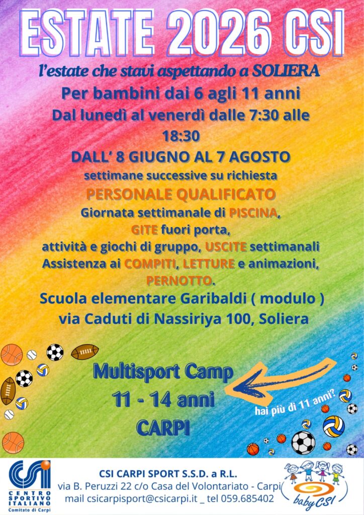 SITO WEB www.csicarpi.it  Aperte le iscrizioni per i nostri camp estivi a Carpi e Soliera e per il Multisport Camp – CSI CARPI